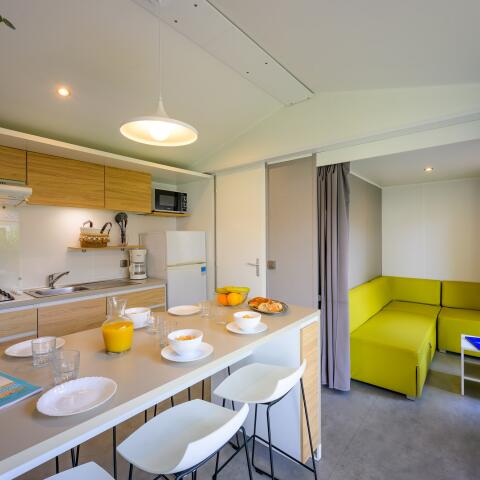 - Signature Prestige 2 chambres (4 pers.) : un mobil-home moderne, fonctionnel et confortable.